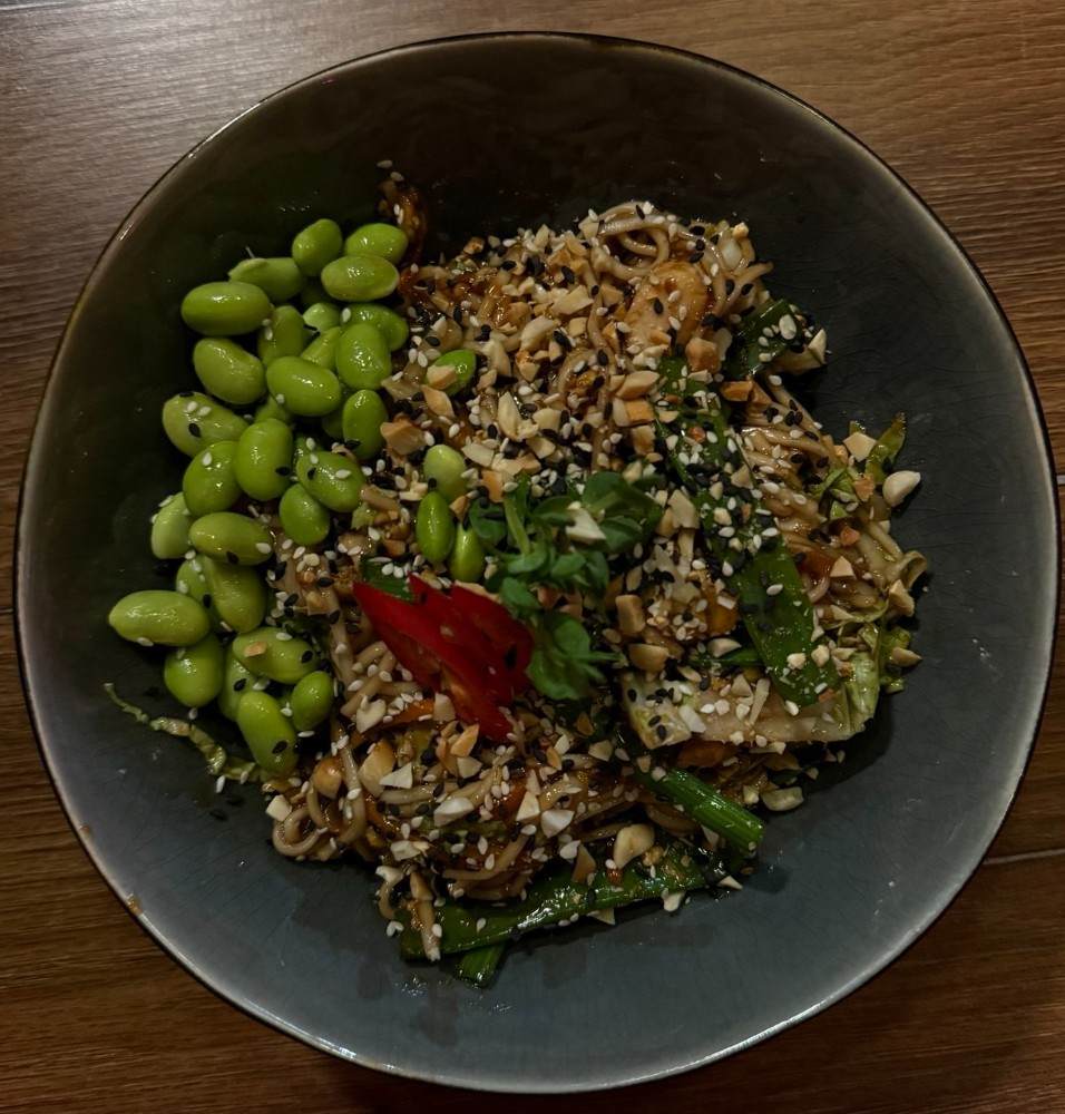Овочі гриль з соусом песто